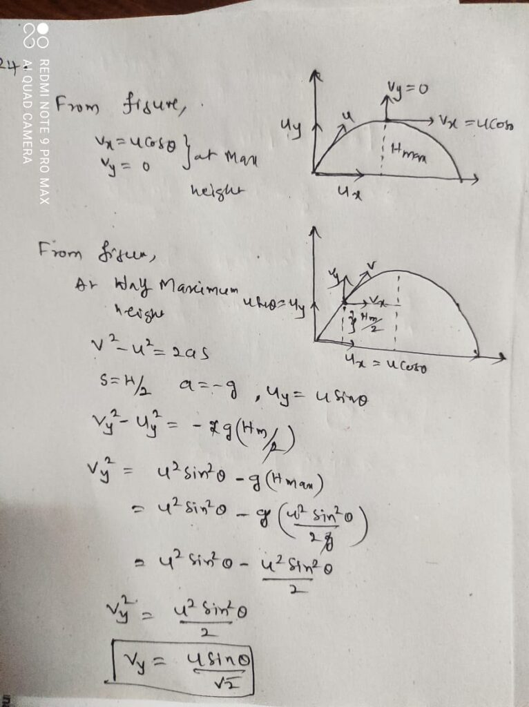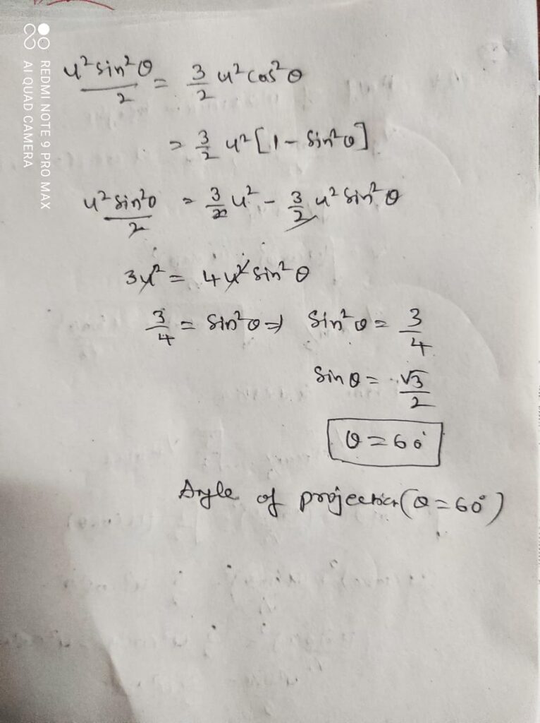 24.The velocity of a projectile when it is at half of the maximum height is root (5/2) times its velocity at its highest point. The angle of projection